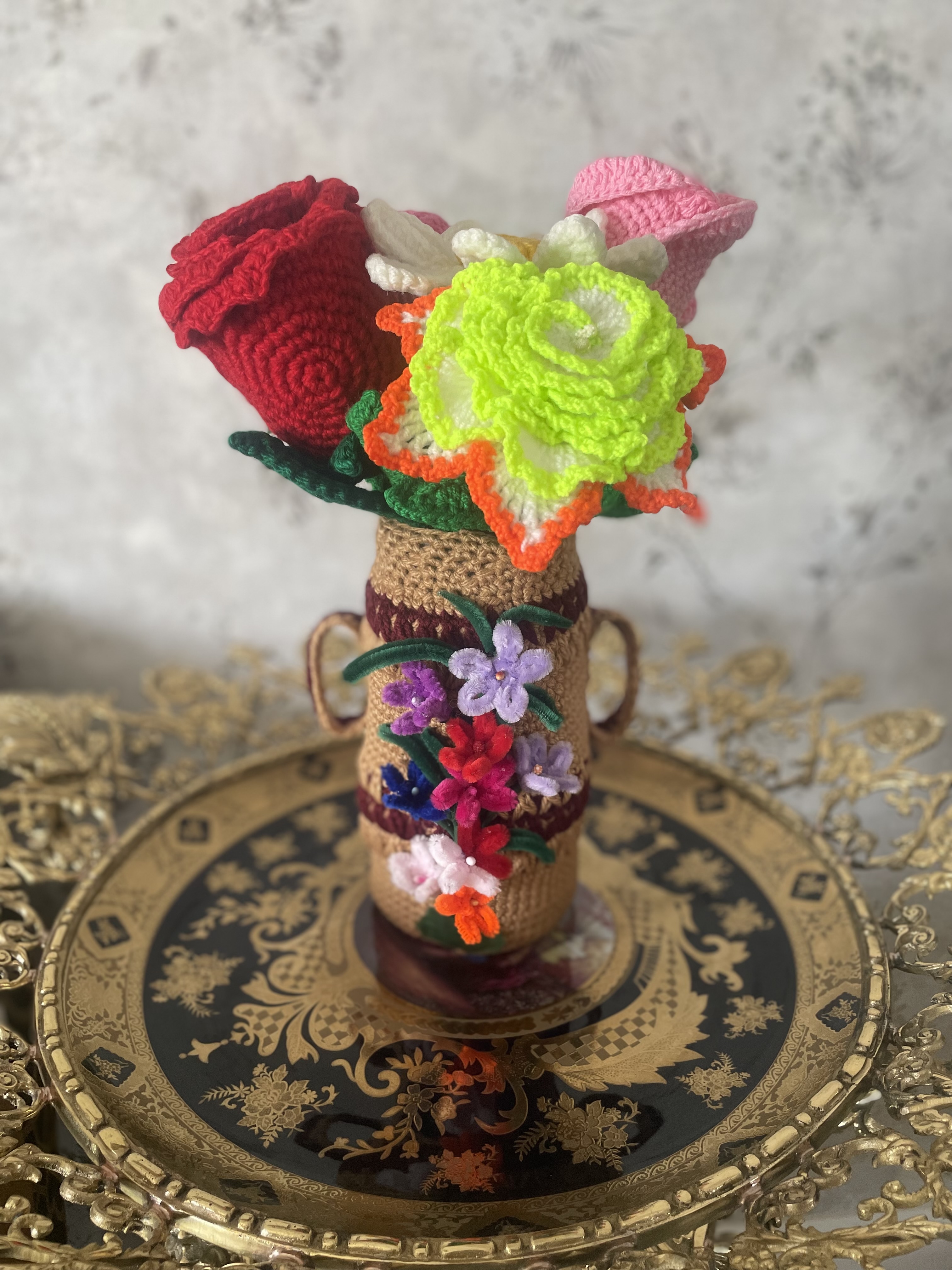 اما برای ساعات فراغتم و برای سرگرمی شروع به قلاب بافی کردم و چون علاقمند شدم اقدام به دریافت مدرک مربیگری و مدرک آموزش حرفه ای از سازمان فنی و حرفه ای کردم . و سپس اقدام به ایجاد سایت و پیج اینستاگرام کردم تا بتوانم دستبافتهای خودم را با قیمتی بسیار مناسب به مردمی که علاقمند به صنایع دستی هستند معرفی کنم .