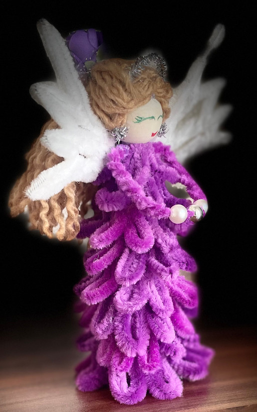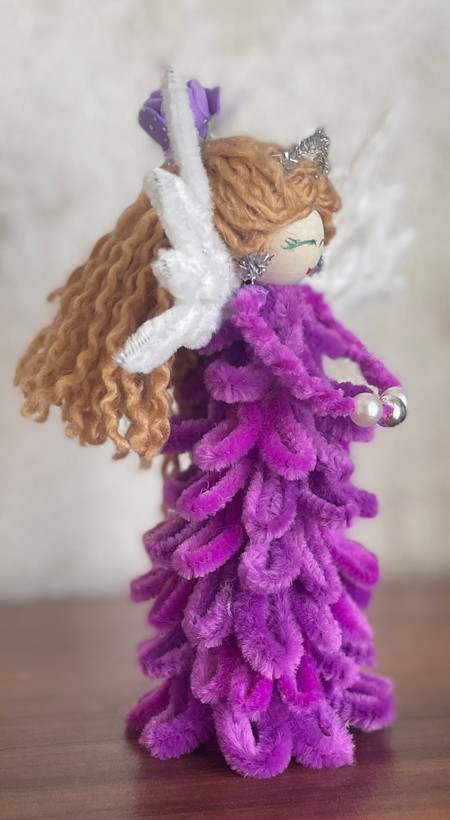 در میان رنگها و خلاقیتها، یک فرشتهی کوچک و دلانگیز متولد شده؛ فرشتهای با لباس بنفش پر از نقش و نگار، که انگار از دل رویاهام بیرون اومده. بالهاش از پیپکلینرهای سفید ساخته شده، مثل پرهای ابری که تو آسمون رقصیدن و بهش روحی آسمانی دادنهای فرفری و طلاییش، با اون تاج نقرهای که روی سرش میدرخشه، بهش جلوهای پادشاهانه بخشیده. دور کمرش، مرواریدهای سفید و نقرهای مثل ستارههای کوچیک میدرخشن و زیباییش رو کامل میکنن. این فرشتهی دستساز، نه فقط یه کاردستی ساده، بلکه یه تکه از قلب و خلاقیت منه که با عشق و دقت شکل گرفته. انگار هر پیچ و تاب پیپکلینرها، یه داستان از صبوری و هنرم رو روایت میکنه. این فرشتهی قشنگ، میتونه روی هر میز یا گوشهی خونهای بشینه و با لبخند نقاشیشدهش، به همه یادآوری کنه که زیبایی تو سادگی و عشق به خلق کردنه اون يكي هم فرشتهی قرمز منه که فکر کنم یه کم تو کار جادوگری زیادهروی کرده! با یه دستهگل که انگار از مهمونی عروسکا دزدیده و یه حلقه که میگه “من جادوگرم، بفرما ورد بخون!”