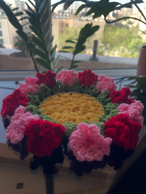 یه زیر لیوانی پر از عشق و رنگ!بافت این زیر لیوانیهای خوشگل با کلی ذوق و دقت انجام شده تا لحظههای چای و قهوهتون رو زیباتر کنه! دورش گلهای ظریف بافته شده که حس بهار رو به خونهتون میاره اين زیر لیوانی زيبا ،دسته گل هم میشه! با عشق و هنر دستهام بافتم تا هم زیر لیوانی باشه، هم یه دکور قشنگ برای خونهتون! میتونید آویزونش کنید و به فضای خونهتون حس تازگی بدید بدید و خونهتون رو با هنر دستساز تزئين كنيد