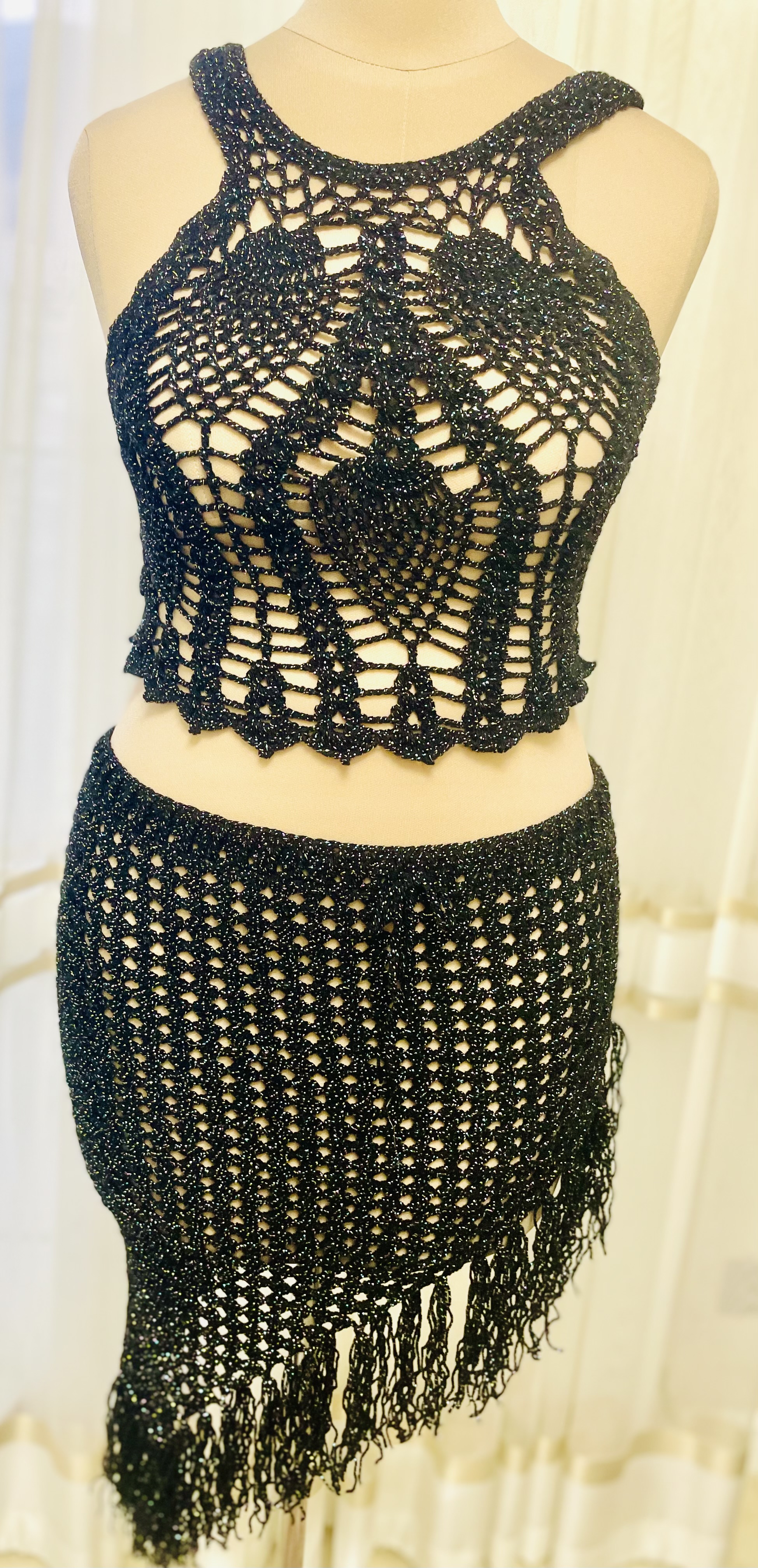 کراپ تاپ و دامن ساحلی قلاب بافی